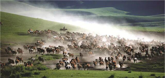 张掖市山丹县 山丹军马场 山丹军马场地处河西走廊中部、祁连山冷龙岭北麓,地跨甘、青两省、比邻三地六县,总面积329.54万亩,其中耕地46万亩、草原180万亩、林地80万亩,其他23.54万亩。山丹军马场总场下辖四个场,人口1.8万人,距今已有2130多年的悠久历史,是国家科技进步奖一等奖——“山丹马”的故乡,素有“丝路绿宝石”“祁连明珠”等美誉。