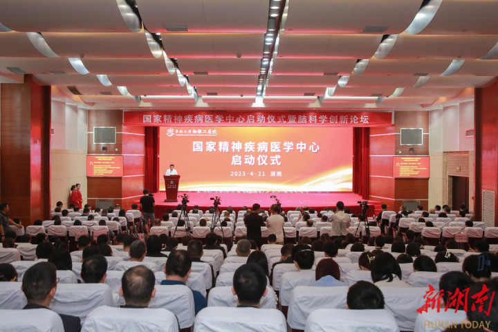 2023年4月21日,中南大学湘雅二医院国家精神疾病医学中心启动仪式。 攀峰越壑:在关键领域树立中国标杆 2026年1月13日,医院精神病学科成瘾医学团队因在戒毒康复领域的突出贡献,获得“全省禁毒人民战争成绩突出集体”表彰。 成瘾治疗虽是世界性难题,但医院一直在前沿领域默默攻坚,持续突破。“一根细软的电极植入大脑,竟让我摆脱了纠缠多年的酒瘾。”2023年,难治性酒精成瘾患者陈先生在湘雅二医院接受了“双靶点脑深部电刺激治疗”手术。术后随访时他表示,生活终于重回正轨。这项由该院精神学科与神经外科联合攻关的临床研究,不仅在国内酒精成瘾预防复发领域填补了空白,也标志着精准医疗在精神外科领域的重要突破。 “国家医学中心的首要使命,是在关乎国计民生的关键医学领域担当‘先锋’,为解决‘卡脖子’问题作出突出贡献。”湘雅二医院党委书记、国家精神疾病医学中心主任柴湘平介绍,中心已逐步凝练形成重大应激性精神疾病、神经发育性精神疾病、成瘾性疾病及临床心理评估与干预四大优势方向,推动国家精神卫生事业向纵深发展。 国家医学中心得以发展的重要基础是拥有90余年积淀的湘雅精神医学科,学科创造了多项“中国第一”:创立研发中国特色的道家认知治疗;组织编写国内首套大型《精神医学丛书》;主持制定我国首版《中国精神疾病分类与诊断标准》;出版我国首本精神科专业杂志《国外医学参考资料精神病学分册》;主持编写我国首版《创伤后应激障碍防治指南》《酒精相关障碍的诊断与治疗指南》;主持修订《中国精神分裂症防治指南》《中国抑郁障碍防治指南》《中国创伤后应激障碍防治指南》;主编我国首部《心理咨询与心理治疗技术操作规范》;先后获得国家科技进步二等奖(唯一完成单位)、国家科技进步三等奖各一项。 数字无声,却是最有力的见证。5年来,800余篇SCI论文筑起学术高原,45篇10分以上顶刊之作矗立起思想峰峦,14项关键技术攻关、16项新药临床探索……学科稳居中国医院最佳学科声誉和学科科技影响力排名全国第三,综合医院精神科排名第一;多名专家先后担任国家级学术机构主任委员;更有专家获任联合国麻醉品管制局第一副主席,深度参与世界卫生组织标准制定,让中国智慧闪耀国际舞台;两人曾获评“全国禁毒工作先进个人”称号。