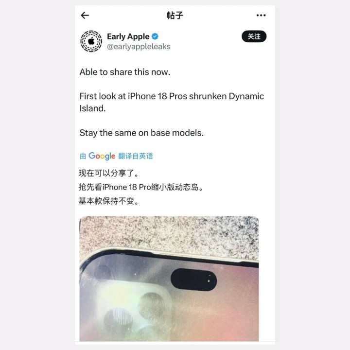 此前已有不少音信源暗意,苹果本年可能会缩减新iPhone的灵动岛面积。这一说法最近添了不少实证。 上周,音信源@Early Apple晒出一张疑似iPhone 18 Pro屏幕的像片,并暗意"iPhone 18 Pro将聘用减弱版灵动岛”。