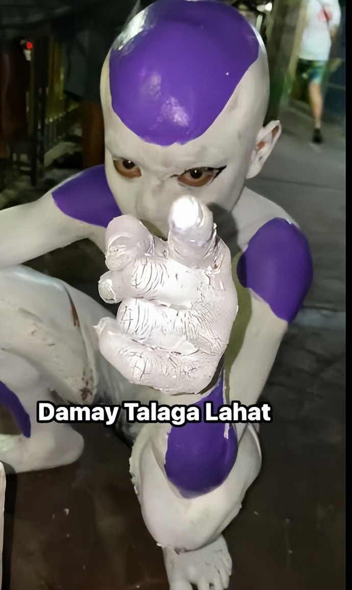 (金色弗利萨) 这亦然网友的一句打趣,但没念念到,果然一语成谶了…… 粗略是小老弟对弗利萨爱得深千里,在他寥寂孤身一人白色油漆衰败之后,他再一次cos起了弗利萨,况兼如故金色形态,他进化了!