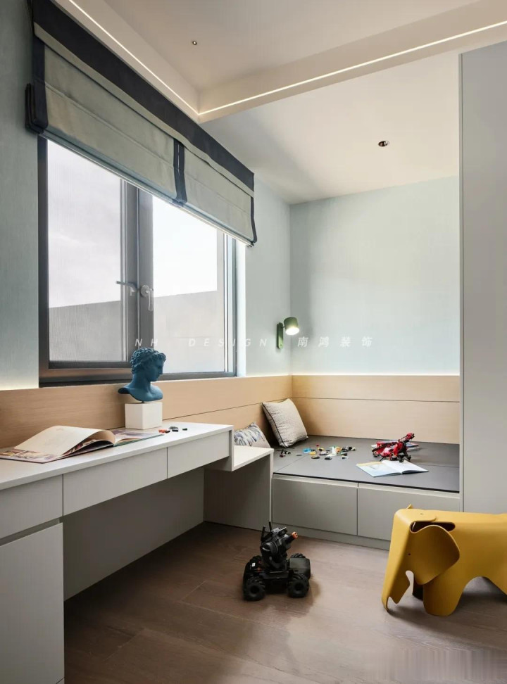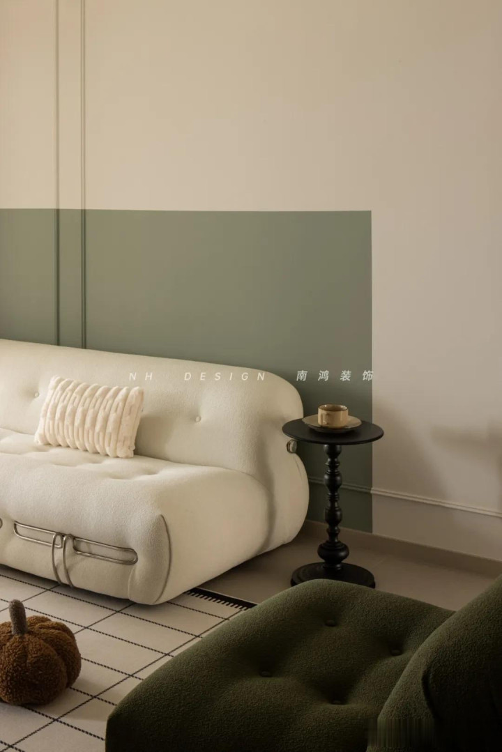 △骨子上墙心思更深少许 除了刷纯色,我们还不错使用颜色拼接,或是几何造型的手法,让墙面领有更多的档次。