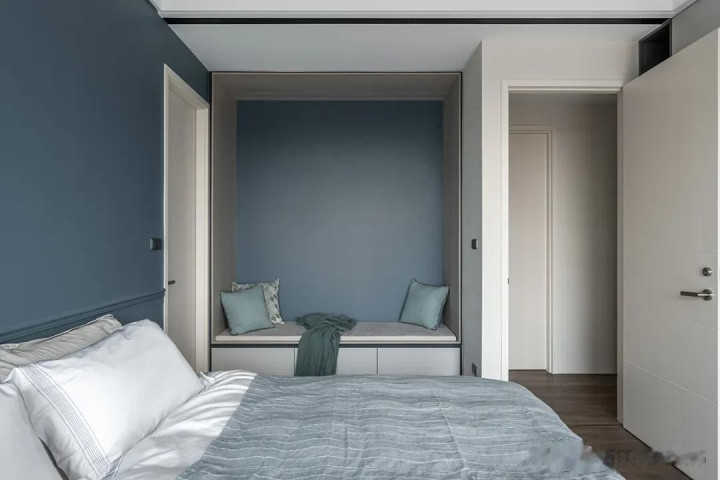 对小户型来说,浅冷色与白色的配景墙能让家更显敞亮。 如若采光精良,可斗胆采取深冷色,毕竟深色的质感一经曲常杰出的。