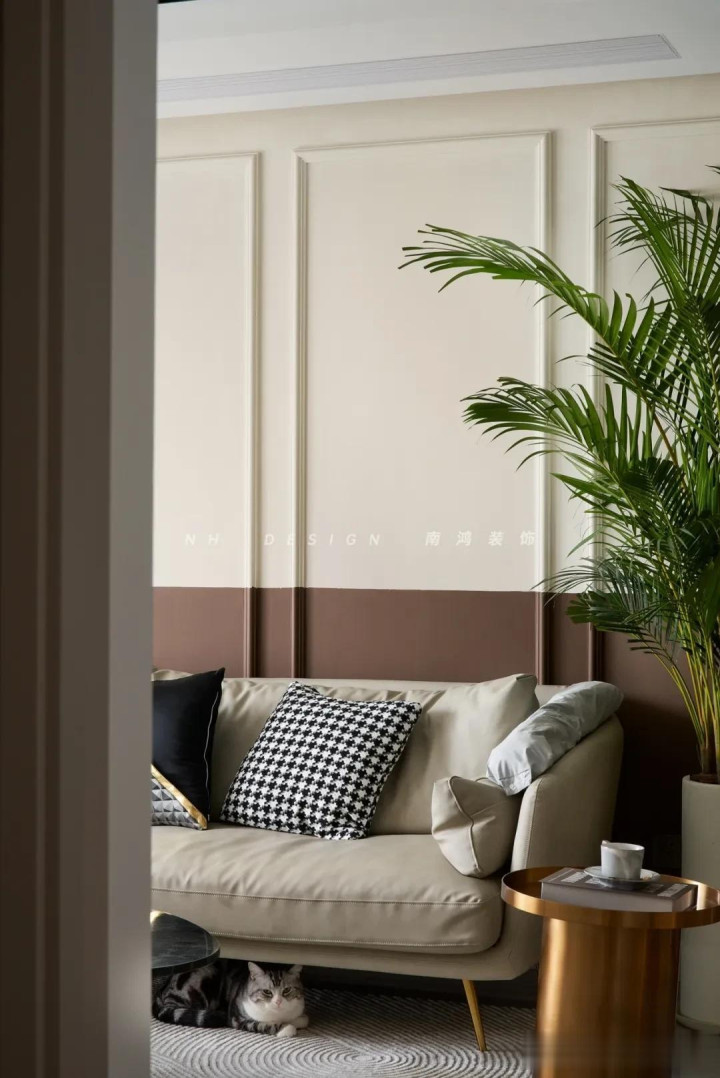 05 组合款1+1>2 如何低老本也能打造出高等感配景墙?我们不错将上述提到的这些材料元素组合起来,会产生出东说念倡导象的好恶果哦。 1)乳胶漆+石膏线/PU线