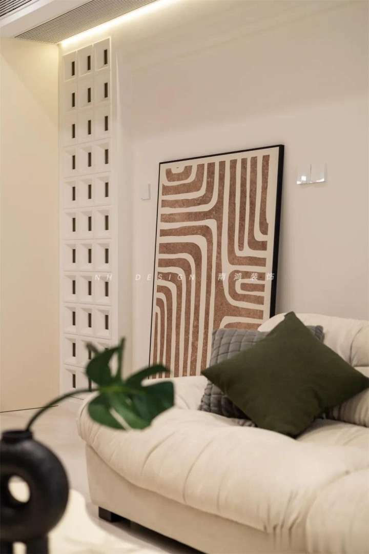 天真哄骗:行动“三联画”容易显得死板,骨子哄骗中我们不错愈加天真,比如用单幅大画落地、散乱排布等多样神色,抒发出随心感,空间也能更安逸。